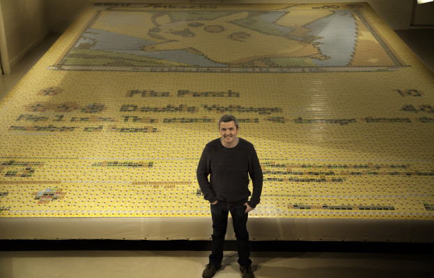 Jumbo Karten gibt es schon seit längerem und meist handelt es sich dabei um eine überdimensionierte Promo-Karte oder eine, die sich aus vier einzelnen zusammensetzt. Der britische Künstler Quentin Devine setzte dem jedoch die Krone auf und schuf aus 12,987 Karten ein riesiges Pikachu Mosaik. Die dadurch entstandene Karte mit über zehn Metern Höhe und sieben Metern Breite ist damit nicht nur die größte Pokémon Karte, sondern hält sogar den Weltrekord der größten Sammelkarte überhaupt.